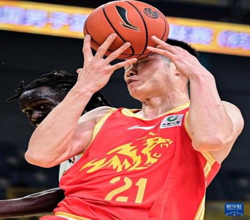1月15日,四川丰谷酒业队球员加克(上)在比赛中扣篮。新华社记者 江汉 摄