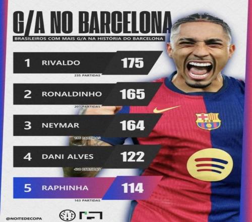 最近Noitedecopa发布了“巴塞罗那队史巴西球员进球+助攻(G/A)排行”。里瓦尔多、罗纳尔迪尼奥、内马尔、阿尔维斯、拉菲尼亚都在前五里,数据一摆出来,风格差异立刻显出来。更扎眼的是,像罗马里奥、罗纳尔多这样也在巴萨留下强烈存在感的名字,却没出现在这张前五名单里。把前场核心和后卫放在同一张“进球+助攻”榜单里,阿尔维斯这种后卫能冲到第4,这背后到底说明了什么(截至2026年1月13日)